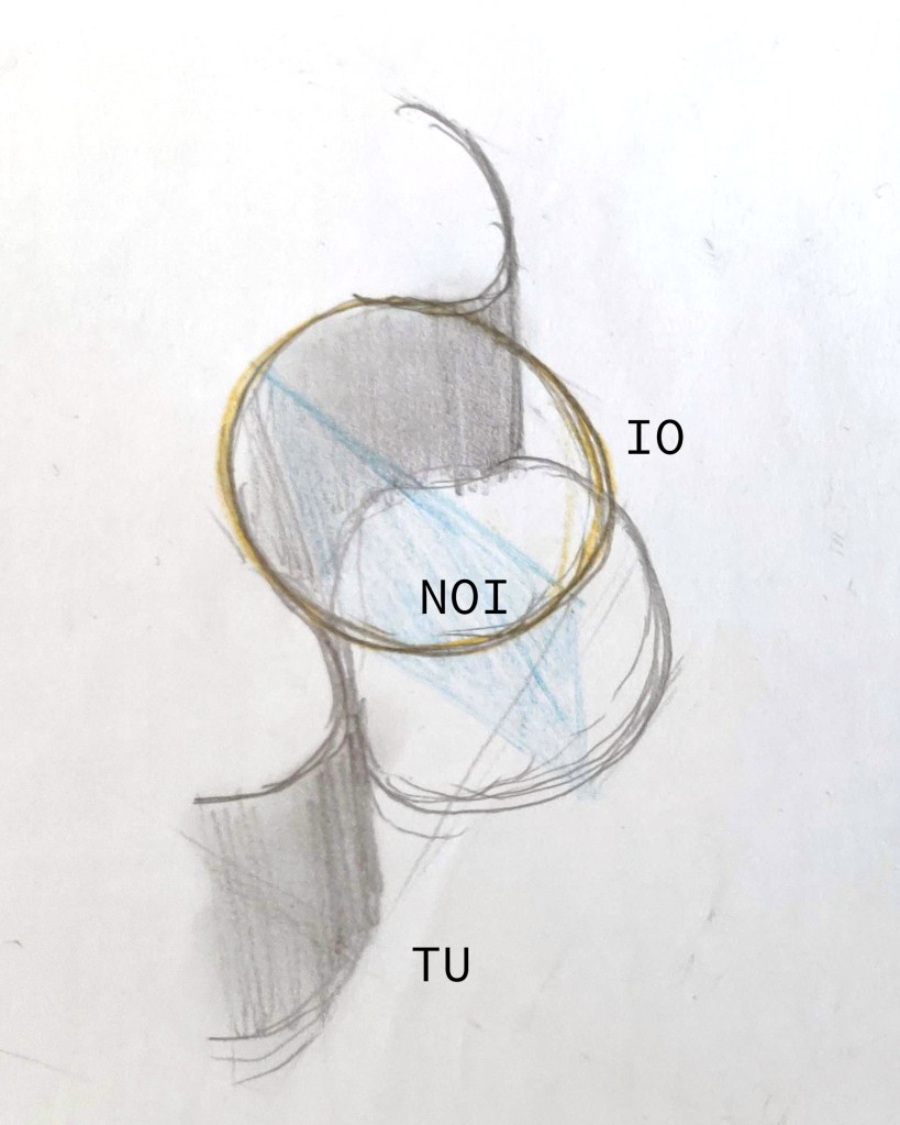Per rappresentare l’incontro, l’abbraccio, prendiamo in prestito il concetto di Terzo Paradiso di Michelangelo Pistoletto, formato da tre cerchi, due più piccoli laterali, che rappresentano l’”IO” e il “TU” e un cerchio più grande centrale che unisce i due concetti in un “NOI”.