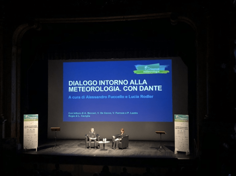 Dal 18 al 20 Novembre 2021 c’è stato il Festival ella Meteorologia a Rovereto. Questa settima edizione del Festival è stata inaugurata all’interno del Teatro Zandonai, celebrando il connubio tra scienza e arte attraverso un inaspettato viaggio poetico che ha esplorato i riferimenti meteorologici all’interno della più grande opera Dantesca partendo dagli inferi e giungendo al paradiso. Si sentono nominare la pioggia, la neve, la nebbia, il vento, fenomeni totalmente inaspettati in un mondo etereo teoricamente fuori dallo scenario umano. E invece Dante, nel suo lungo viaggio nell’aldilà, porta con sé una dimensione umana, servendosi della meteorologia per esprimere sentimenti, sensazioni ed emozioni.