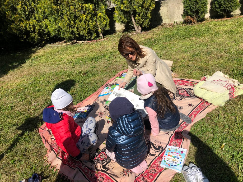 Per poi passare all’angolo lettura, dove poter riflettere e disquisire su quali effetti può produrre sul nostro ambiente, un gesto superficiale come quello di gettare un rifiuto dal finestrino di un’auto, rispetto a quelli di azioni dal significato più profondo e consapevole, come quella intrapresa da Wangari Maathai, ad esempio, che, ispirata dal desiderio di risanare la sua terra e sensibilizzare le persone della sua comunità, ha dato vita al movimento “Green Belt”, grazie al quale sono stati piantati, nel tempo, ben oltre 51 milioni di alberi ! E qui gli occhi dei bimbi si sono illuminati al pensiero di cosa potesse nascere dalla loro semina della giornata. Ci teniamo a ringraziare la Biblioteca delle Storie Infinite di Trezzano, per i suggerimenti e le indicazioni sui testi consigliati per la lettura, per le diverse fasce d’età.