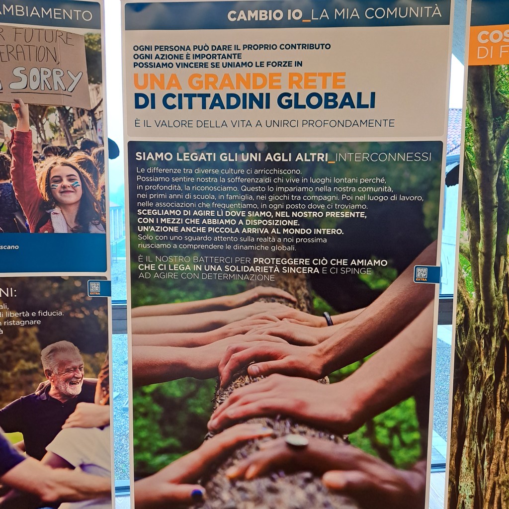 Un’occasione anche per imparare a chiamare le cose con il loro nome e ad attingere a fonti di informazione attendibili per sviluppare quello spirito critico e quella capacità di discernimento che sono tra le competenze chiave oggi per influenzare l’ambiente e darci la spinta a ricercare quegli esempi positivi e quella bellezza che ci circonda, ma che non è così facilmente accessibile, come le testimonianze delle persone comuni, anch’esse raccolte all’interno dei pannelli, che, partendo da una scintilla nel loro cuore hanno dato vita a ondate di cambiamento nelle loro comunità.