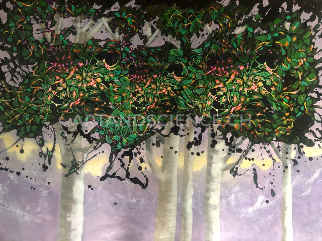 La mostra Art & Science. Visions on cellular morphogenesis, è un ambizioso progetto nato con l’intento di fare conoscere, attraverso l’arte, gli orizzonti della ricerca neuroscientifica e per accrescere la sensibilità intorno ad argomenti, quali le malattie neurodegenerative e i processi legati all’invecchiamento, che riguardano tutti noi molto da vicino. Un’idea sviluppata dall’artista Claudia Cantoni in collaborazione con la scienziata Ester Piovesana, entrambe affascinate dalla bellezza astratta esercitata da entità cellulari analizzate al microscopio, manifestazioni di gravi patologie, e legate dalla comune attitudine di operare in maniera partecipata confrontandosi con esperienze diverse. L’arte e la scienza diventano un tutt’uno, due realtà valorizzate attraverso una coraggiosa sperimentazione artistica, che unisce immagini di cellule cerebrali ottenute nelle ricerche in laboratorio da Ester Piovesana, con quelle surreali, realizzate da Claudia Cantoni, con lo scopo di comunicare come alcuni grandi traguardi relativi il futuro e il benessere dell’uomo giungono dalla tecnologia. Le immagini che derivano dall’osservazione di cellule neuronali e della loro mutazione dovuta all’interazione con speciali sostanze coloranti usate nella ricerca microbiologica, vengono inglobate nel lavoro artistico da Claudia Cantoni, secondo un approccio che vuole fare leva sulla percezione visiva. La fase intermedia del processo, è quella digitale, per ogni opera è stato creato un video che mostra il procedimento creativo consentendo all’osservatore di essere totalmente immerso in ogni fase processuale, favorendo una comprensione e un coinvolgimento globale che trova riscontro visivo ed emotivo nei dipinti eseguiti manualmente su tela dall’artista. Il reperto scientifico scelto rappresenta una fondamentale fase embrionale di un processo interattivo, un tassello che diviene parte di un tutto, o meglio una parte che contiene già un tutto, colto e sviluppato dall’artista attraverso la propria immaginazione. L’artista crea nuovi mondi fantastici, scenari naturali differenti, come fondali marini e panorami montuosi, restituendo anche gli stati mentali che insorgono tra la veglia e il sogno. Centrale per l’artista è la natura, per lei preziosa fonte di ispirazione che nell’opera si manifesta in tutti i suoi aspetti, sia nella dimensione nobile e maestosa che in quella minacciosa e inquietante, unendo il particolare con il generale, il micro con il macrocosmo, il tangibile e l’intangibile. Un modo di agire, strettamente legato ai nuclei narrativi iniziali, generatori di nuove e più grandi storie