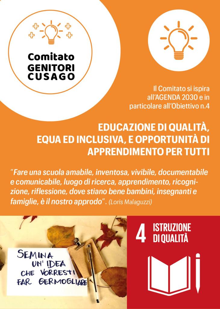 Il Comitato si ispira al contenuto dell’AGENDA 2030, in particolare all’Obiettivo n.° 4: “Fornire un’educazione di qualità, equa ed inclusiva, e opportunità di apprendimento per tutti” e rende proprio il principio secondo cui “un’istruzione di qualità è la base per migliorare la vita delle persone e raggiungere lo sviluppo sostenibile