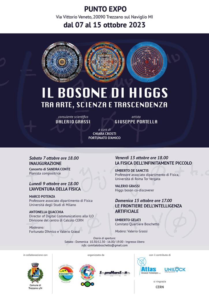 I protagonisti in mostra con le loro documentazioni e le loro opere sono: Giuseppe Portella, artista da sempre interessato alle relazioni tra arte e scienza; Valerio Grassi, uno scienziato in forza al CERN negli anni della scoperta del Bosone di Higgs e per questo insignito del prestigioso riconoscimento di Cavaliere dell’Ordine al Merito della Repubblica Italiana.