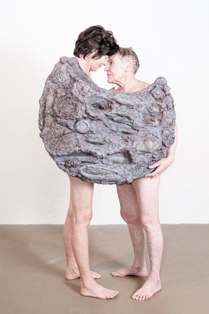 Corpi nudi, semplici e reali, si mostrano o si nascondono, si fanno scudo e si sostengono tra loro, divenendo un corpo unico che attinge alle energie primordiali degli elementi e ad una forza interiore più segreta e sotterranea.
