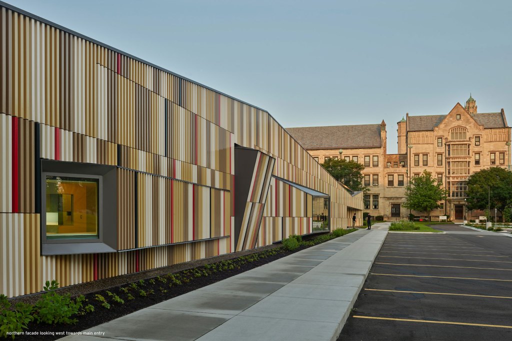 La nuova estensione del Campus รจ situata nelle adiacenze dell’edificio principale, un edificio gotico โTudorโ a quattro piani, del 1927: un fabbricato insieme modesto e di carattere, rivestito in terracotta smaltata, con tre cortili ben organizzati e un interno semplice ma elegante. Il nuovo progetto fa riferimento ai dettagli, al peso materico e alla memoria delle strutture storiche in muratura di Detroit e la nuova facciata policroma costituisce un esempio di impiego progredito del ventunesimo secolo, di un materiale da costruzione tradizionale, quale il mattone. In occasione dellโesposizione, il 4 settembre 2024 si tiene la conferenza di presentazione del Premio, moderata da Wendy Jackson, Managing Director della Kresge Foundation. Intervengono: Dan Pitera, Preside e professore dellโUniversitร Detroit Mercy e Giurato del Premio Dedalo Minosse, Marcella Gabbiani Direttrice del Premio, Marlon Blackwell progettista dellโopera, e Marco Magni dello studio Guicciardini & Magni giร vincitore del Premio Speciale Caoduro Lucernari nel 2017, con lโopera di Santa Maria del Fiore di Firenze. Ospite speciale la Console italiana di Detroit Allegra Baistrocchi, patrocinatrice della manifestazione. Evento collaterale alla mostra, il Dedalo Cinema, quinta edizione, che incontra la cittร di Detroit con alcune proiezioni. Dedalo Cinema รจ la manifestazione sorella del Premio alla Committenza, che racconta gli Architetti nel cinema, prendendo spunto dal volume di Giorgio Scianca e Steve della Casa โLa recita dellโArchitettoโ, che racconta la figura dellโarchitetto in quasi 2000 film, in oltre cento anni di Cinema e centinaia di Paesi.