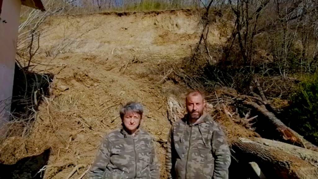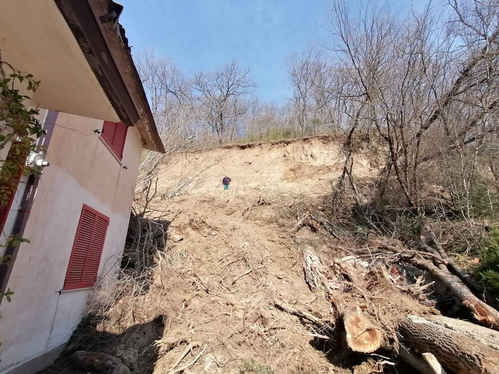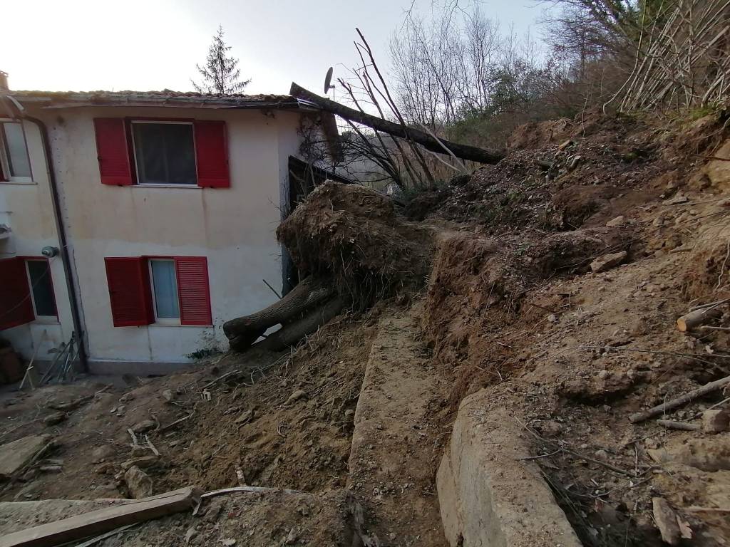 E’ iniziato già il lavoro urgente di rimozione dei primi detriti crollati dal pendio sulla casa e sull’officina/laboratorio.
